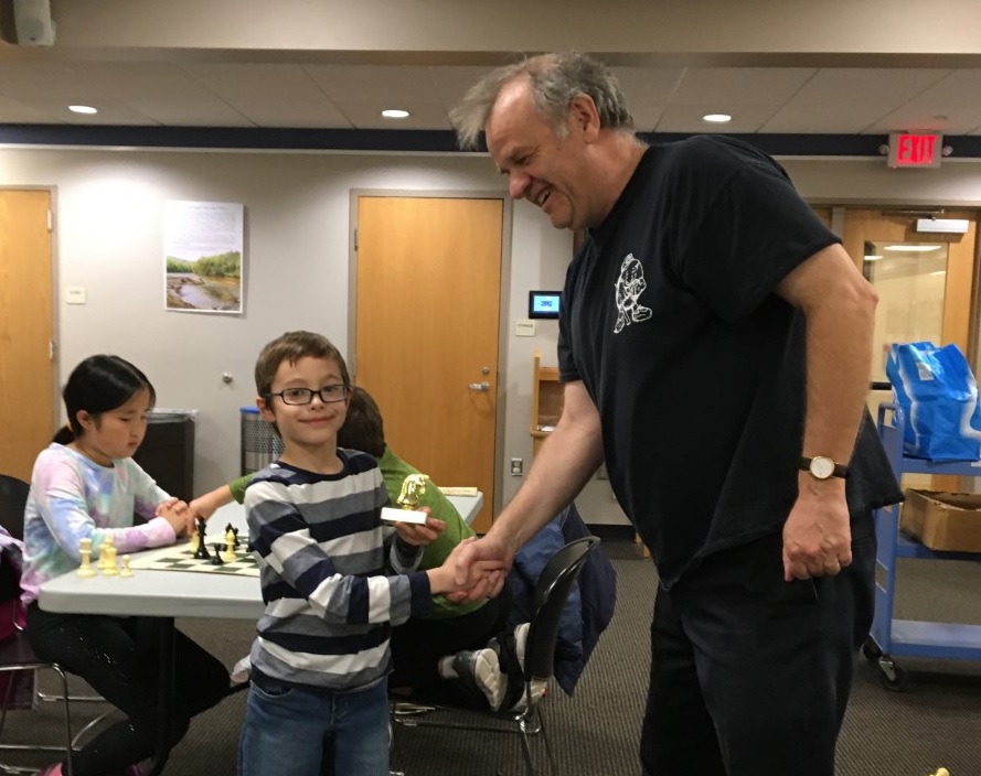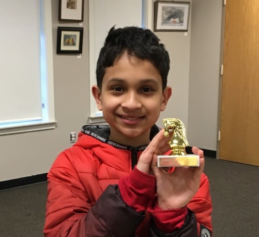 Jan 28 2020: For the first time since our 2009/2010 season, a level 5 trophy was awarded. Ethan beat a coach in a King-Bishop-Knight vs King endgame within 5 minutes. He also memorized and showed us a game where his favorite player beat the current world champion. Great job!
