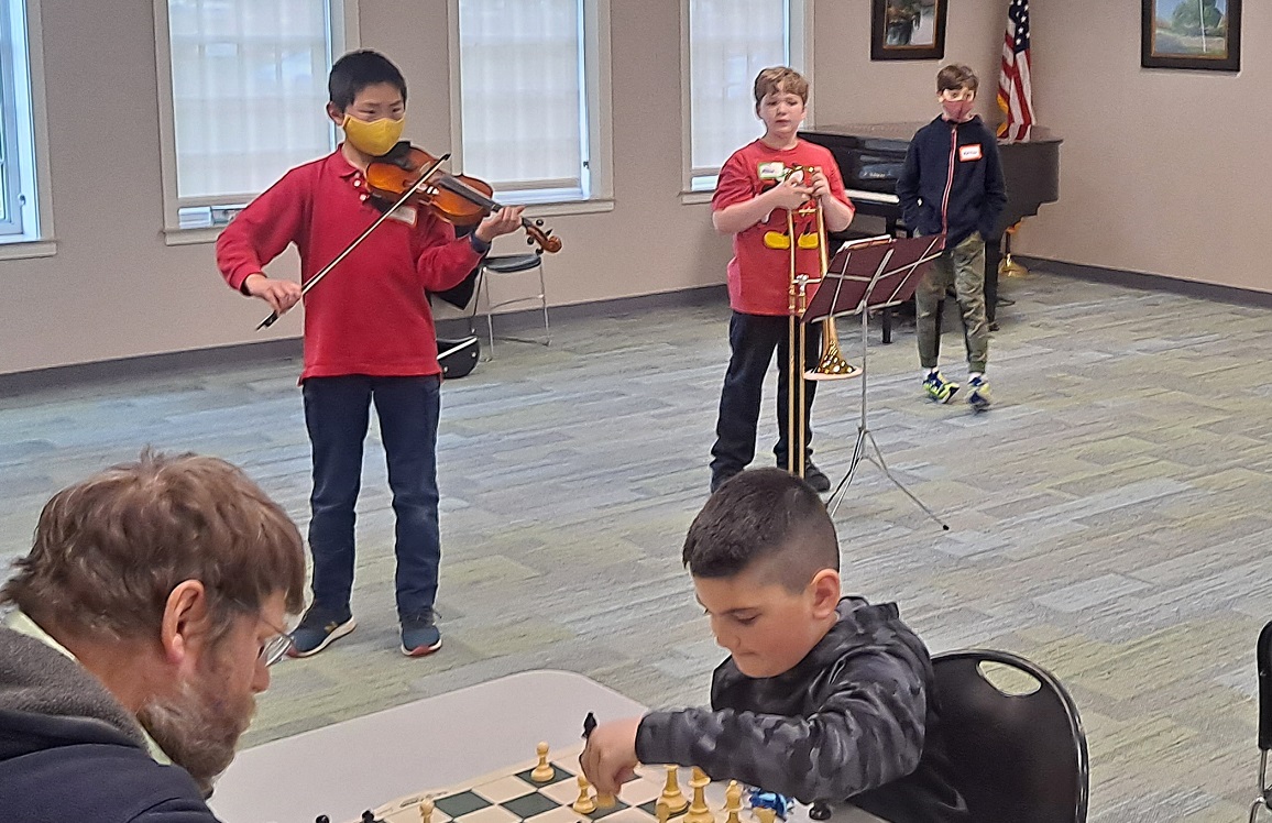 Our musicians: James (violin), Adam (trombone), Matthew (piano), Vivaan (piano, not in picture)