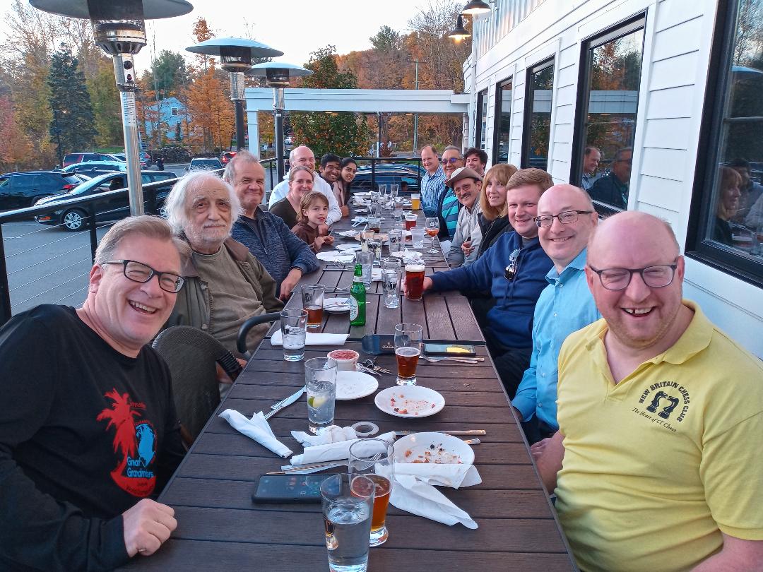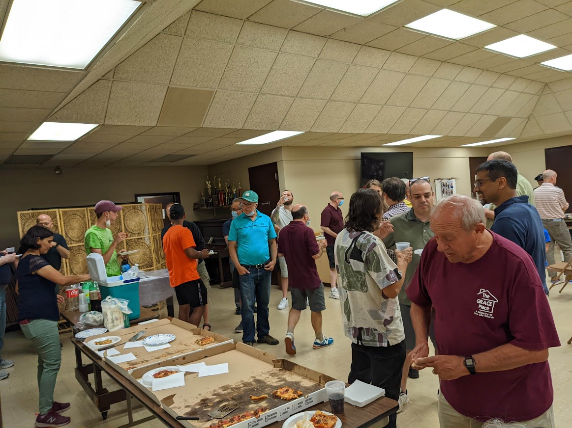 Players from across the state enjoy pizza and refreshments at Bob's party.