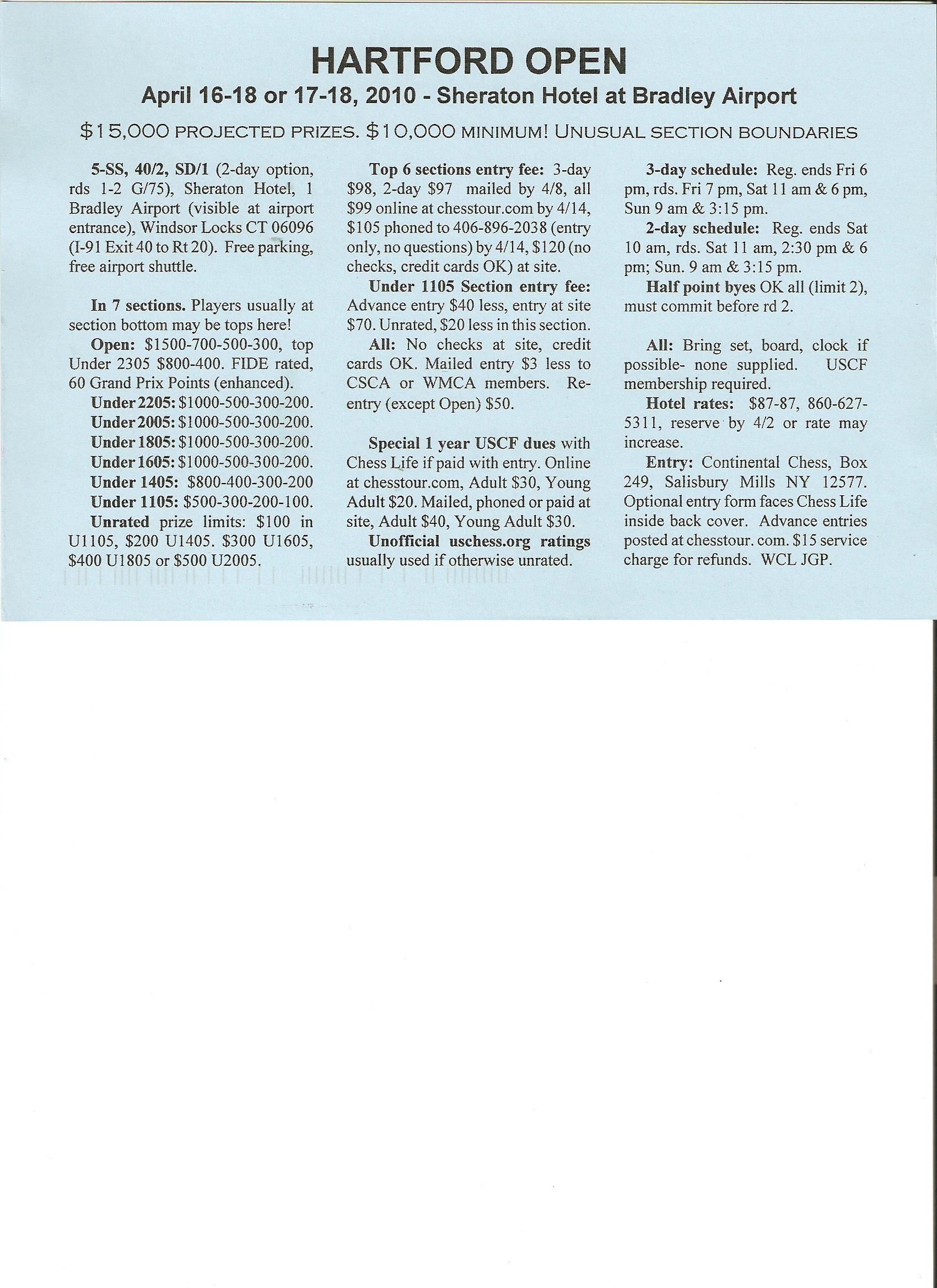 Mar 20: 1st St Thomas Spring Classic in Fairfield, (203) 335 6177 or BruceSwan@earthlink.net.